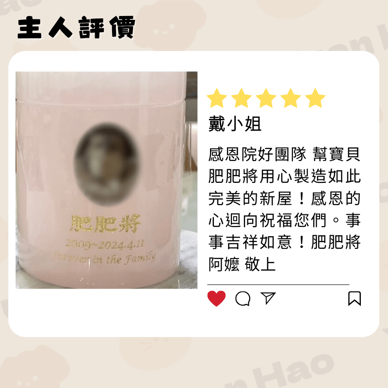 以優雅、尊貴的方式保存與寵物的回憶,讓您和寶貝的愛在未來持續綻放,成為生活中不可或缺的美好一部分