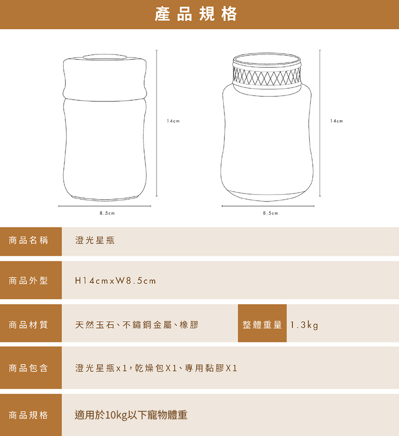 - 瓶身內含金屬內膽設計,降低受潮機會
