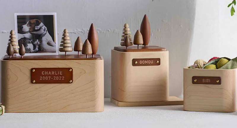【漫遊森林計劃】暖心登場,為寵愛回憶盒設計一系列的裝飾擺件,以溫潤的木質與各種素材搭配,讓毛孩爸媽能夠親手佈置毛寶貝的最終住所,留下專屬的紀念與回憶。