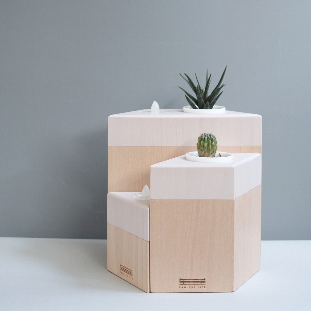 外型簡約的幾何系列,全新跳色上蓋為個性毛孩而生,森木棕沉穩內斂,雲霧白飄然且恬靜,安穩存放寵物的骨灰。