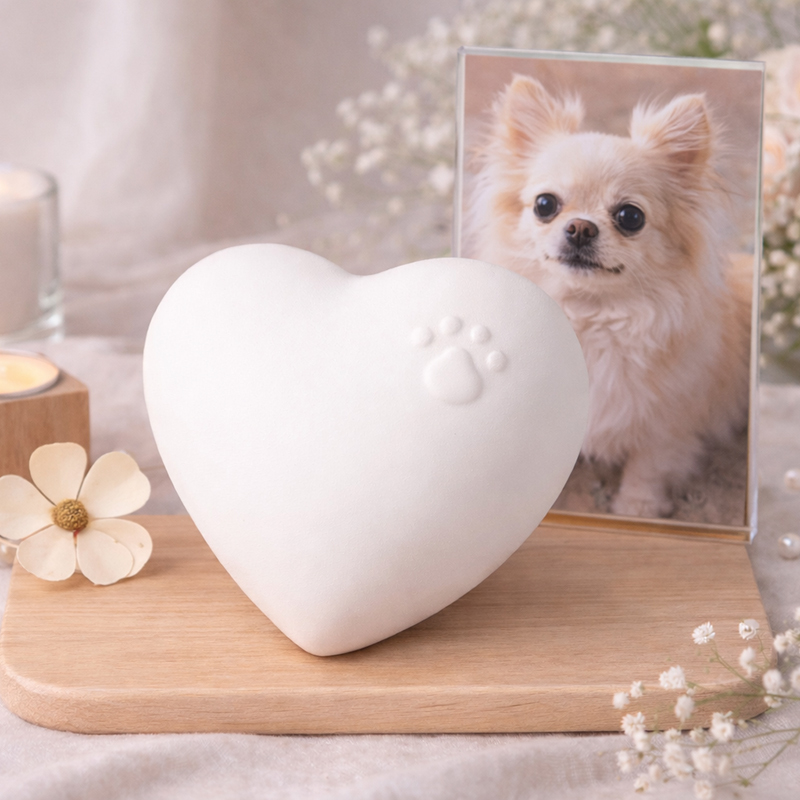 這款以溫柔愛心造型打造的寵物骨灰罈,細緻呈現柔霧粉與純淨白兩款色系,低調卻深情。