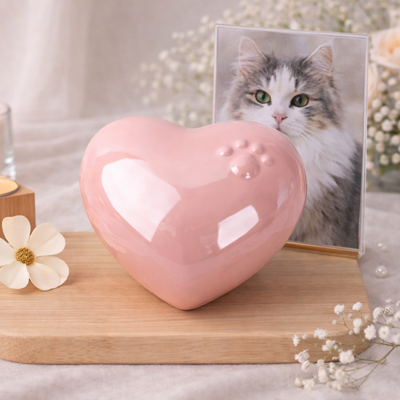 這款以溫柔愛心造型打造的寵物骨灰罈,細緻呈現柔霧粉與純淨白兩款色系,低調卻深情。